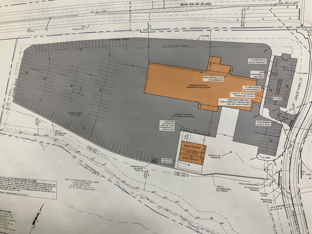 The goal is to consolidate all trucks, which are currently parked at various locations on Bell & Evans properties, to this one location at 109 Fredericksburg Road.