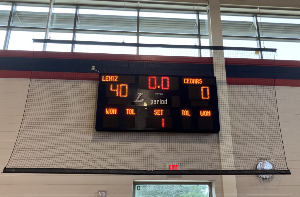 Lentz started out a little slow, but warmed up quickly. As an announcer kept track of each free throw made, much to the delight of the students who screamed their approval, the scoreboards at either end of the court kept track of each successful attempt. The name of the visiting team was replaced with the word “Lentz” above where each successful shot was logged on the scoreboard.