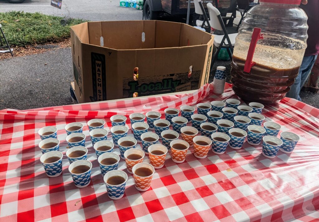 Apple cider, fresh from the press, was free to be sampled by guests, with larger amounts of cider (provided by Masser’s Farm Market, which also provided apples for fresh cider) available for purchase.