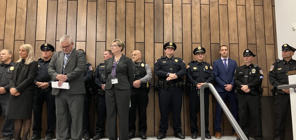 The press conference followed a meeting of the Lebanon County police chiefs, both of which were held at the Lebanon County Department of Emergency Services building in North Cornwall Township. Over 20 officers from across Lebanon County lined the stage or sat in the audience.