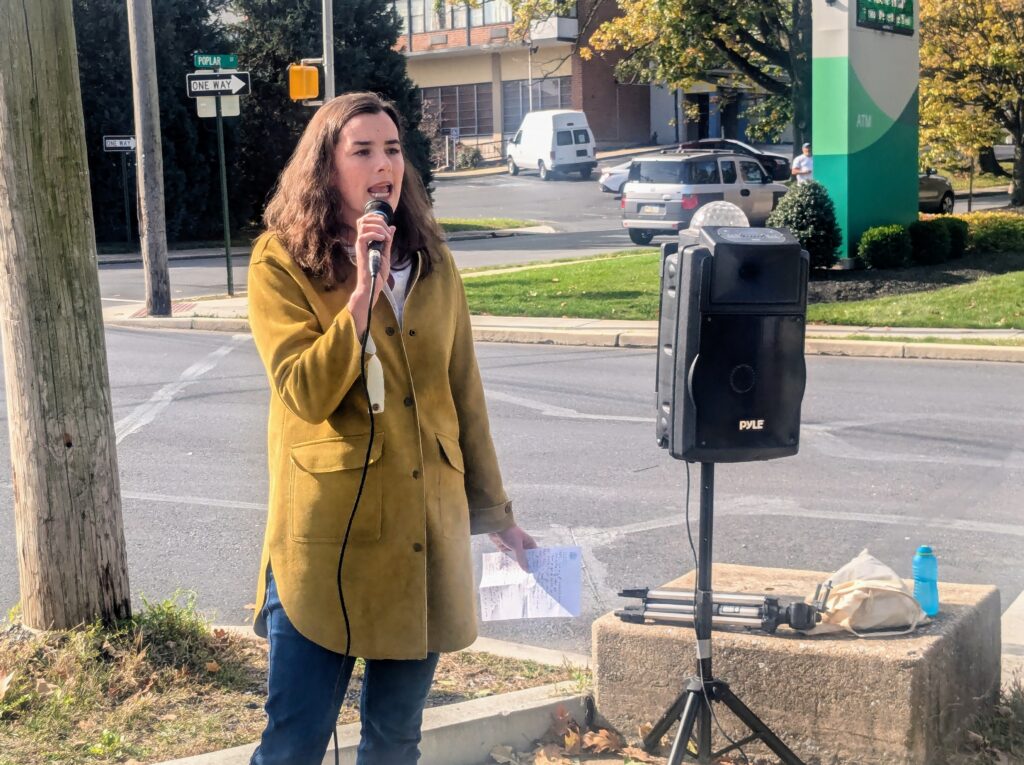 After Schroeder’s introduction, Democratic candidate for the 9th congressional district Rachel Wallace spoke. Wallace is running against incumbent Republican Dan Meuser, who has vocally supported President Donald Trump both before and after his 2024 re-election.