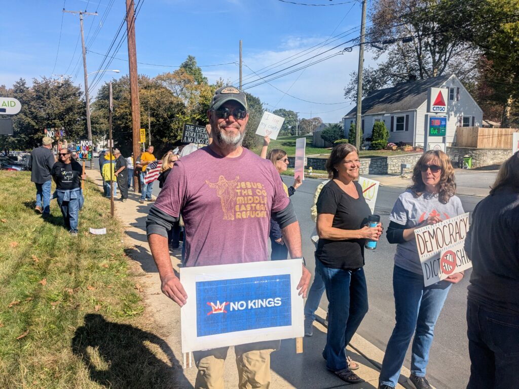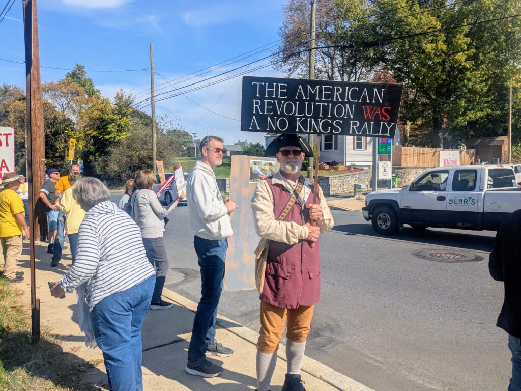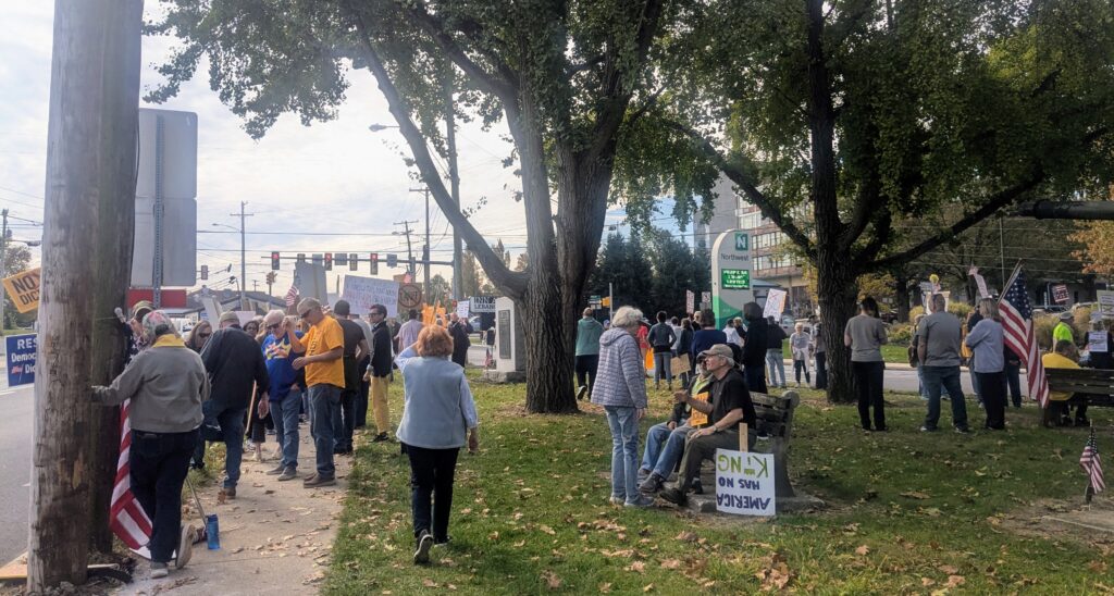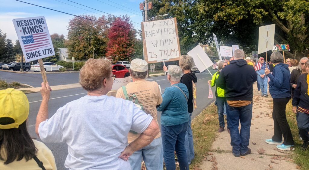 By organizer Michael Schroeder’s estimate, between 600 and 700 people attended Saturday’s protest in Lebanon, one of around 2,700 “No Kings” rallies held throughout the country in what some expected to be one of the highest turnout national protests in American history.