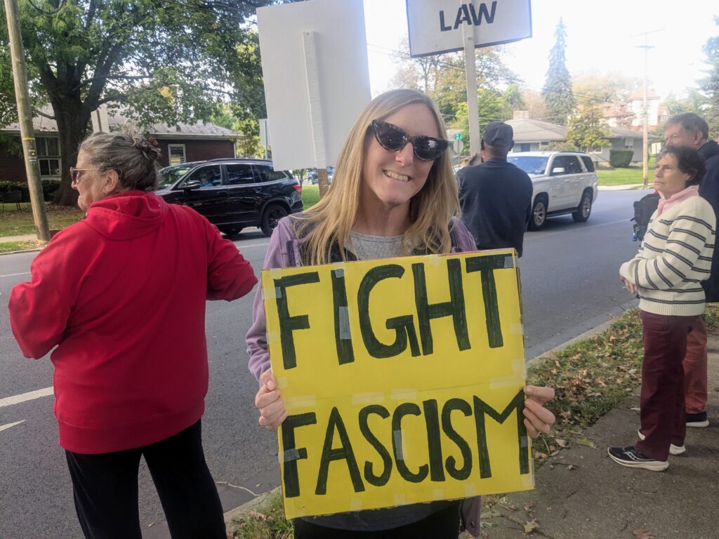 Schroeder, who also plans the weekly Mondays with Meuser protest at Lebanon County Courthouse, explained that though around 300 people registered for the protest, many more showed up without registering.