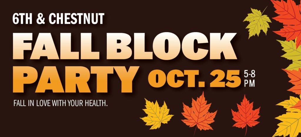 Join us on Saturday, October 25th, 2025, from 5 p.m. to 8 p.m. for the return of the 6th & Chestnut Street Fall Block Party with this year’s theme: Fall In Love With Your Health.