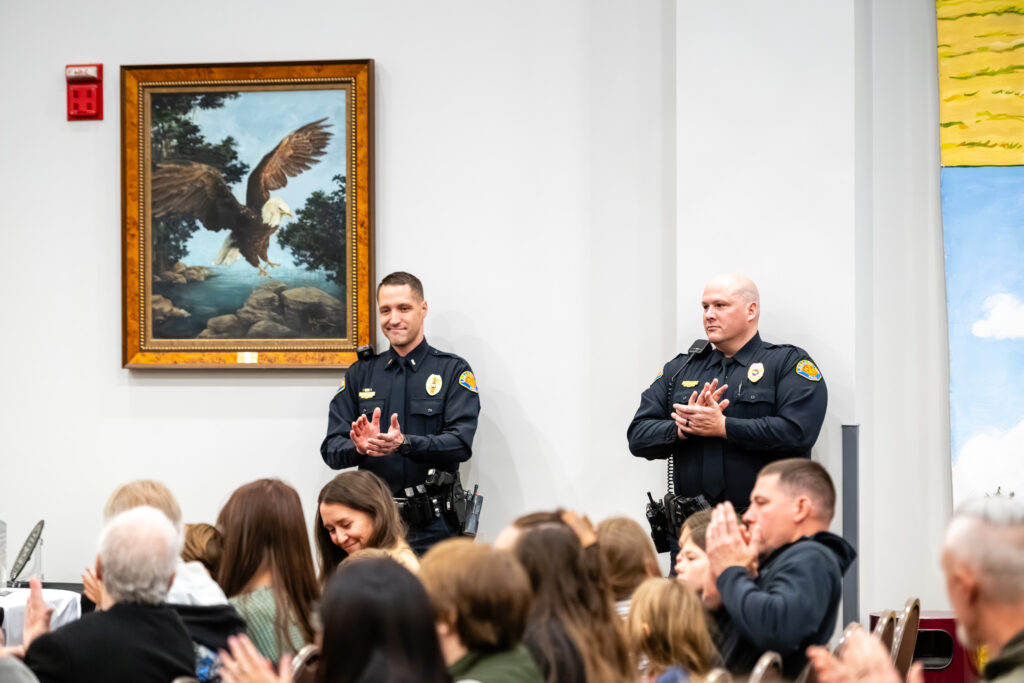 “I just wanna take this chance, if there’s an opportunity to tell you that personally, I have looked up to many of you,” Buck said “I’ve designed my career and strived to be as good as you guys are as cops, chiefs, lieutenants, former sergeants that are all here in this room. It really means a lot that you guys are here to show support for the chief and I. Thank you so much for that. To the men and women of Lebanon City Police Department, it’s an honor to be able to call myself your captain. … My door will always be open and I look forward to working with the chief side-by- side to continue to make this a great place to work.”