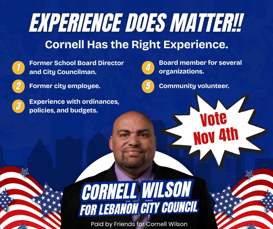 My name is Cornell Wilson, I’m running to be your next Lebanon City Councilman.