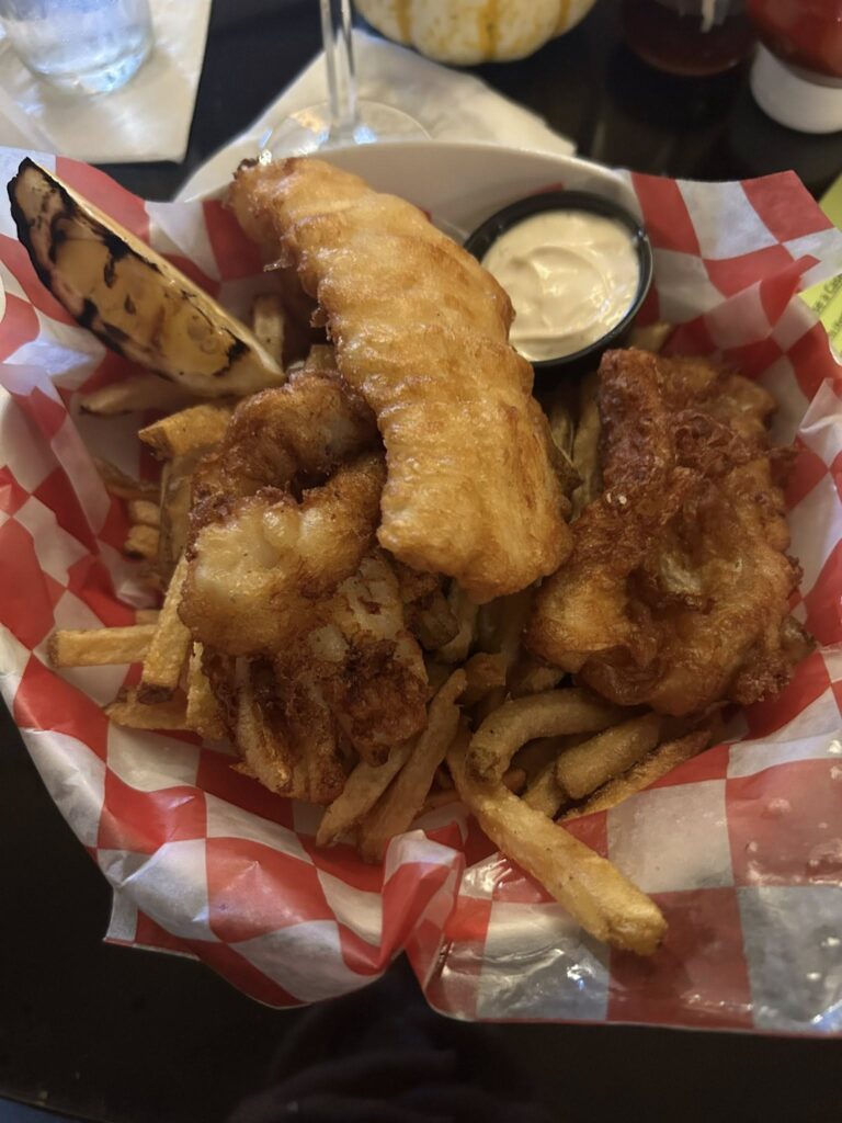 For our dinner tonight we chose the Fish & Chips ($24) and Country Style Shrimp and Grits ($23). Our drinks were the Pumpkin Espresso Martini ($14) and Rainbow Beer-SkitlZ ($8), a fruited sour beer.