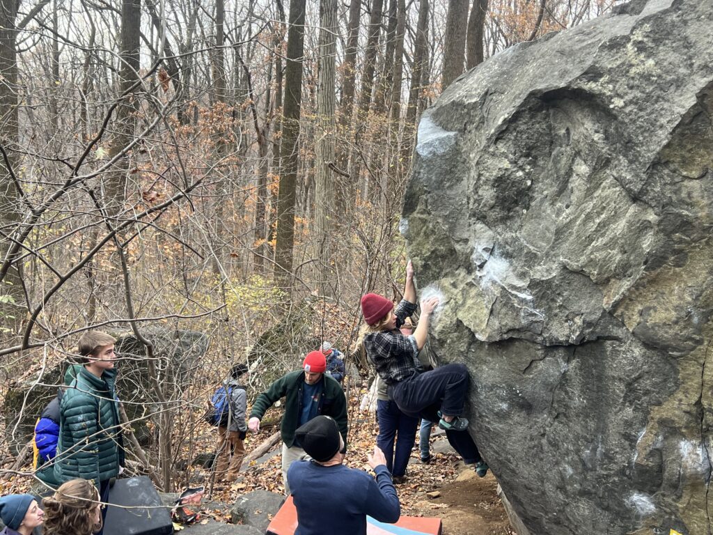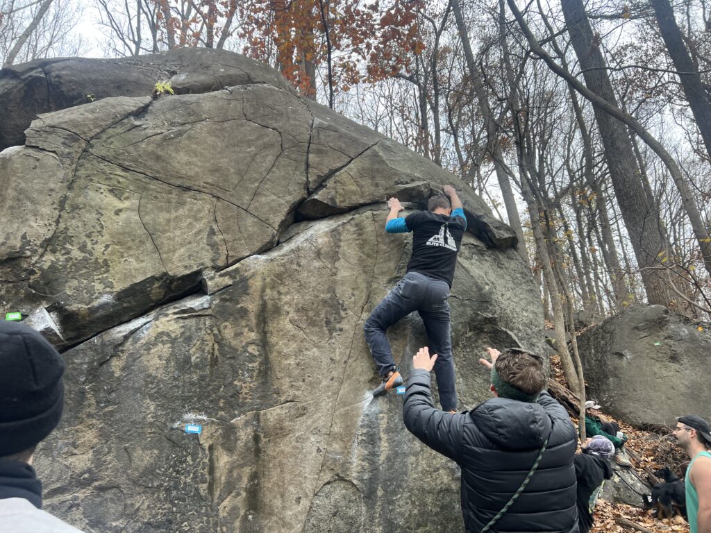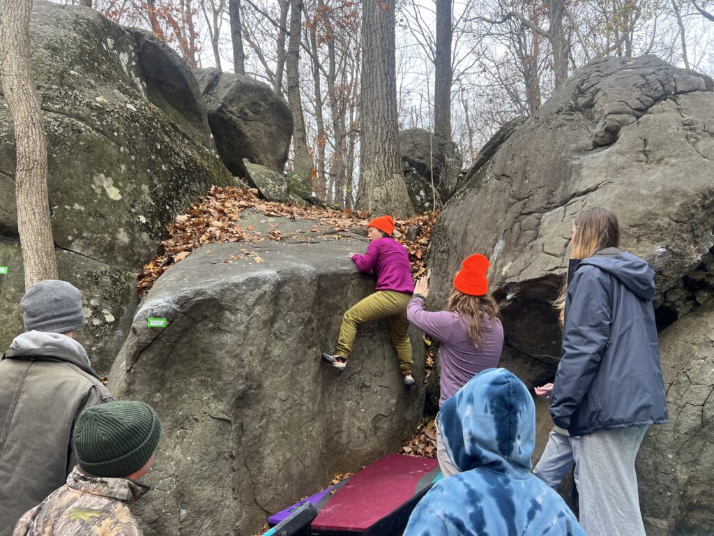 For Chris Dodson, a climber from the Camp Hill area who started in an indoor climbing gym in April, Governor Dick was his first experience climbing out in nature. He wasn’t competing, but he was trying out the natural holds in the boulders and connecting with other climbers before heading in to work later.