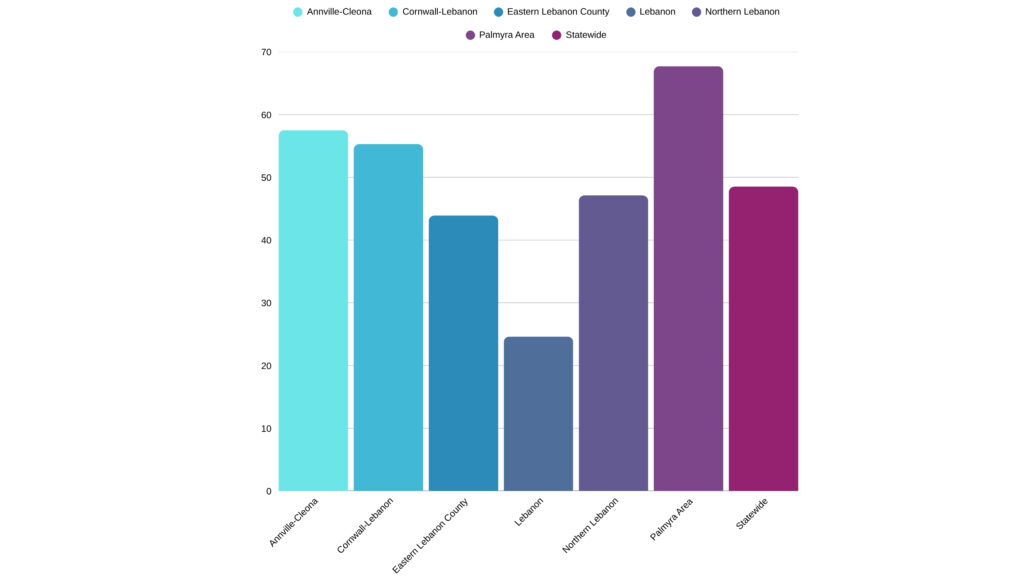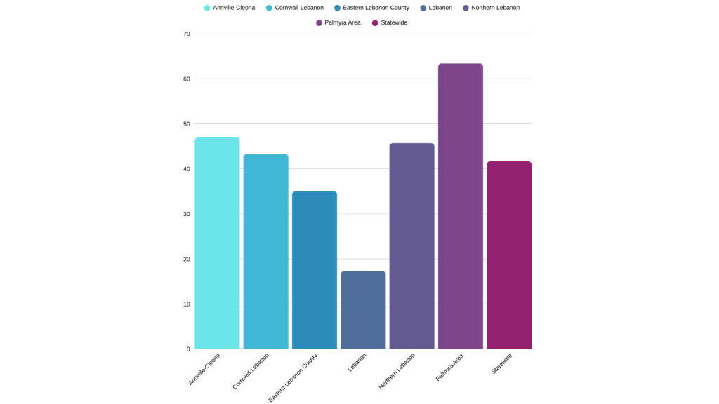 Lebanon County’s results are ordered alphabetically below. The percentages show a rounded measure of students who tested at or above proficient.