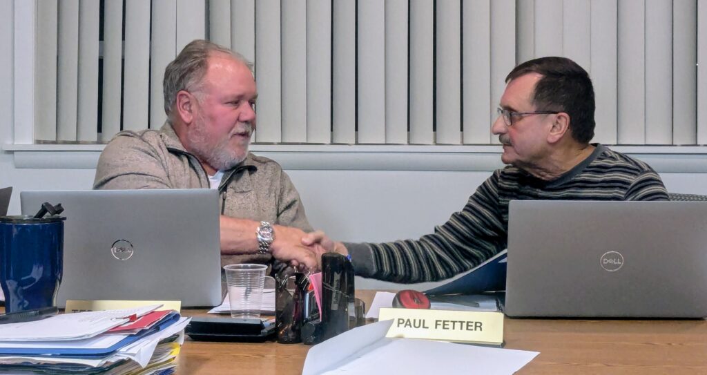 At Heidelberg Township Board of Supervisors’ monthly meeting Tuesday, chairman Paul Fetter thanked secretary William “Ted” Cromleigh for his 12 years on the board.