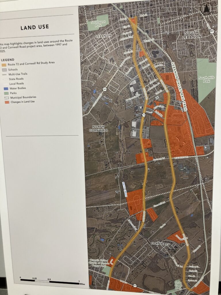 The transportation study is occurring along the corridors of State Route 72 and Cornwall Road between Oak Street in Lebanon and Route 419 in Cornwall and West Cornwall townships.
