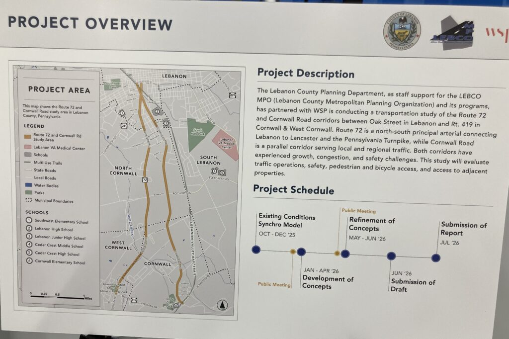 The meeting was held by the Lebanon County Planning Department’s Metropolitan Planning Organization (MPO) to provide residents an opportunity to meet with officials to discuss the transportation study, according to Jon Fitzkee, senior transportation planner with the Lebanon County Planning Department.