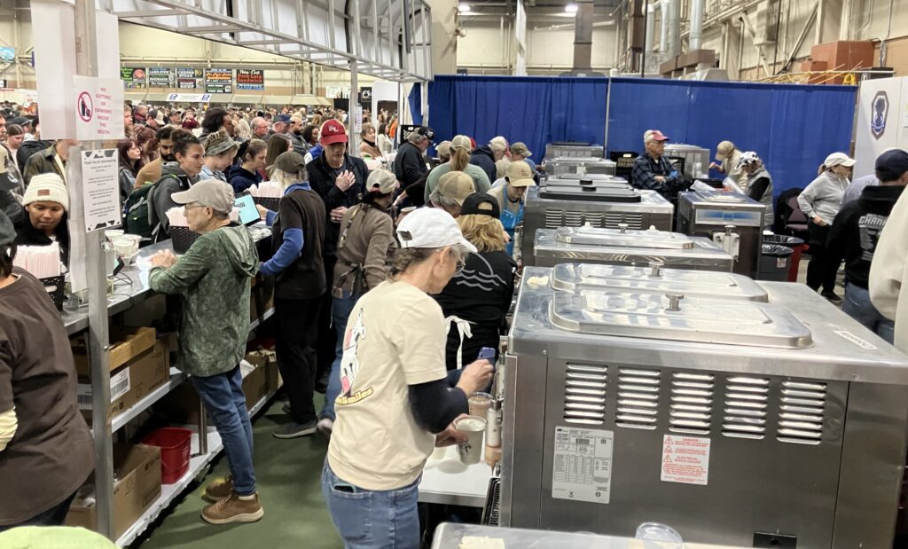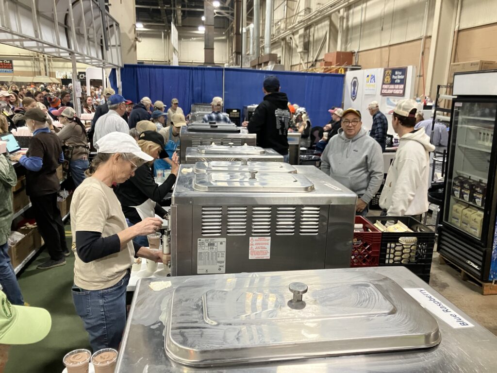 The growth of the organization’s physical presence with the food stand during the Farm Show has also expanded. For years there were only four milkshake machines at one booth that was located in the Main Exhibition Hall. As their fame grew, so did the number of machines. This year, there were 24 milkshake machines at two locations within the complex during Farm Show week.
