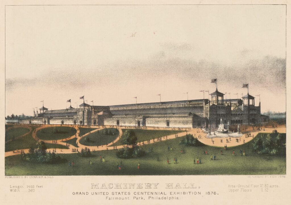 Meanwhile, downstairs in the same hall, crowds swarmed the exhibit where Alexander Graham Bell demonstrated his telephone.