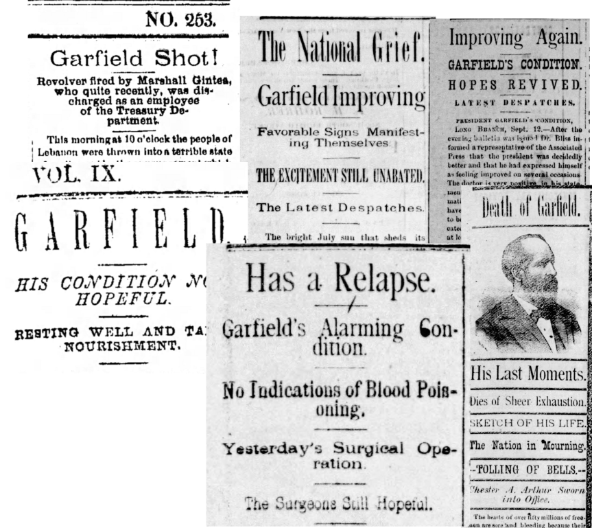 Garfield suffered for 79 days, while the grieving nation was misled into believing he was growing stronger day by day. Newspapers across the country published frequent accounts, first of the shooting and then the stories of hopeful progress; including our own Lebanon Daily News.