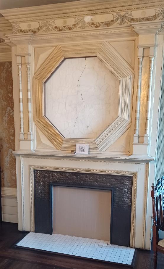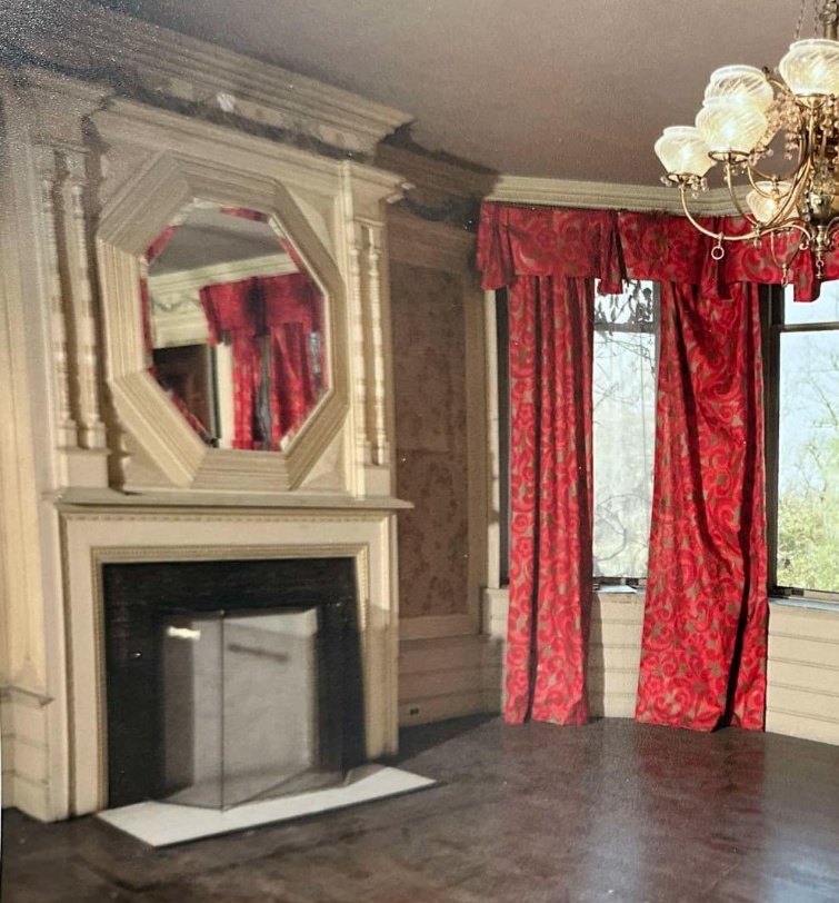 The mirror and the fireplace graced the mansion’s parlor for about 120 years. A photograph taken about 25 years ago shows the mirror still intact.