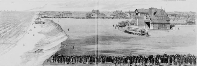 As with citizenry both local and nationwide, workmen’s hearts were buoyed and then cast down by alternating daily newspaper bulletins, first of Garfield’s “improving condition” followed by his “reversals.” On the first week of September with his convalescence seeming “assured,” he was moved to Francklyn Cottage by the seashore of Elberon, Long Branch, New Jersey on special rail car that carried his bed. Workers had laid temporary rails to transport him right to the front porch, but it took the crowd of bystanders to push the railcar the final distance.
