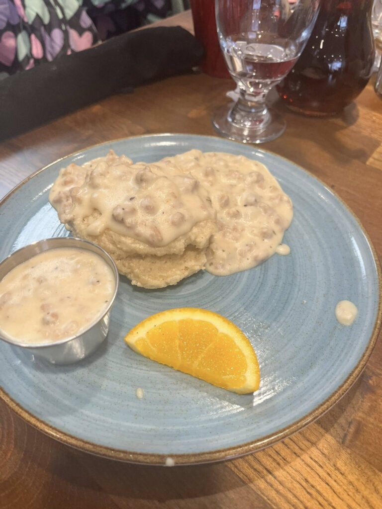 The sausage gravy had hefty chunks of sausage blended within. The taste of the sausage stuck out over the creamy flavor of the gravy. Over top of the biscuit, we enjoyed this as a hearty side dish.