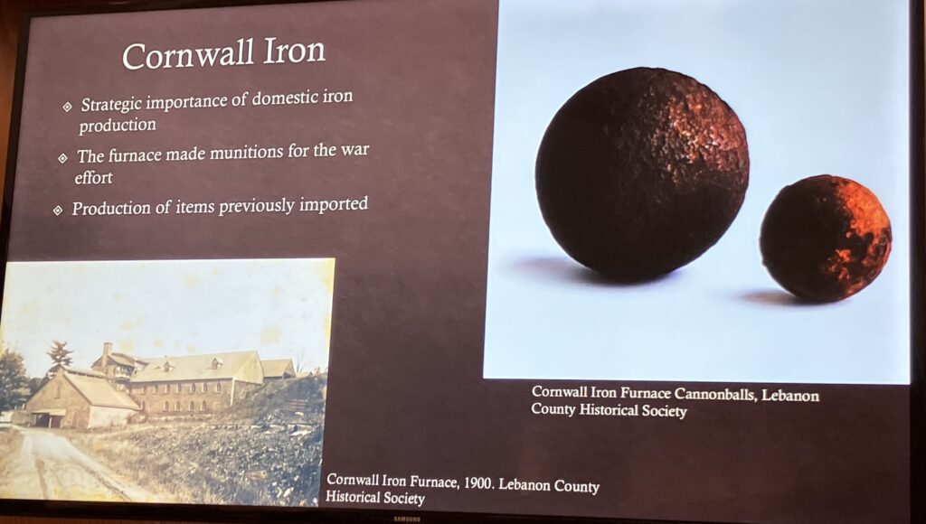 “Cornwall Iron Furnace, to a limited degree, did make things like cannonballs … as well as for a little bit of time they made cannons,” Keenan added.