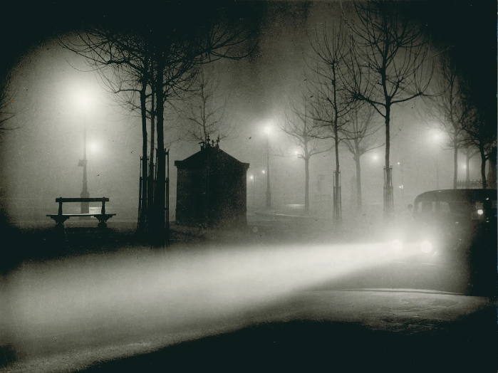 Image: Brassaï (Hungarian-French, 1899-1984), Fog, avenue de l’Observatoire, 1934, gelatin silver print, 9 1/8 x 11 inches. Collection of Michael Mattis and Judith Hochberg.