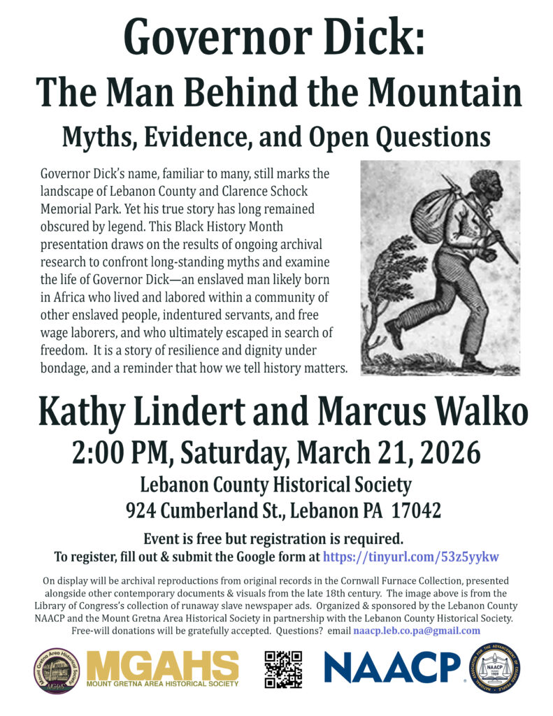 NAACP secretary Michael Schroeder explained that Walko was his student at Lebanon Valley College, who researched the history of slavery at Cornwall Iron Furnace and Governor Dick for a class project. Ph.D. economist Lindert also researched those topics and came on board for the seminar.