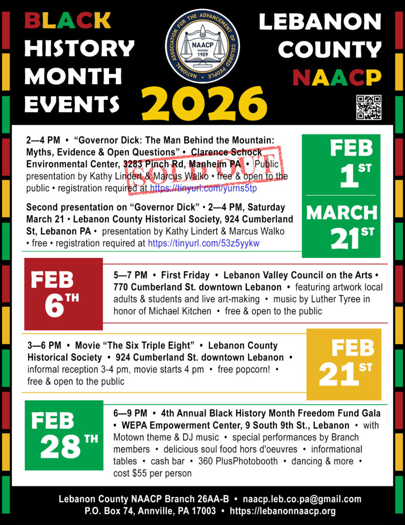 Branch 26AA-B of the NAACP of Lebanon County has planned a variety of events for February in celebration of Black History Month.