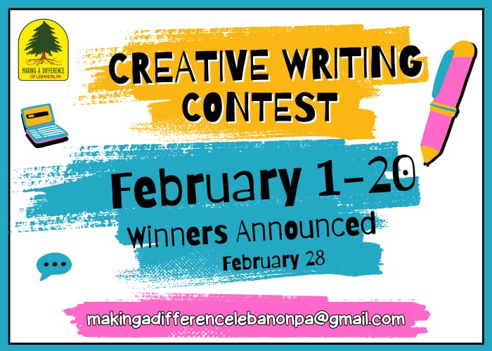 Making a Difference of Lebanon, PA’s Education Committee is teaming up with the Myerstown Community Library to host a Creative Writing Contest all month long in February!