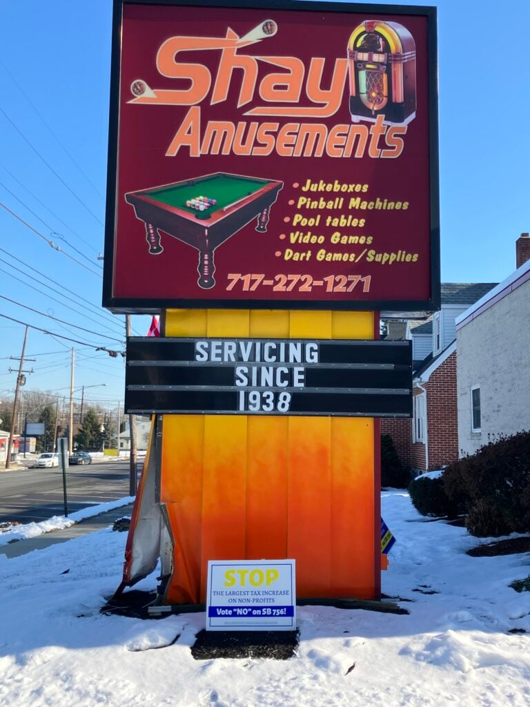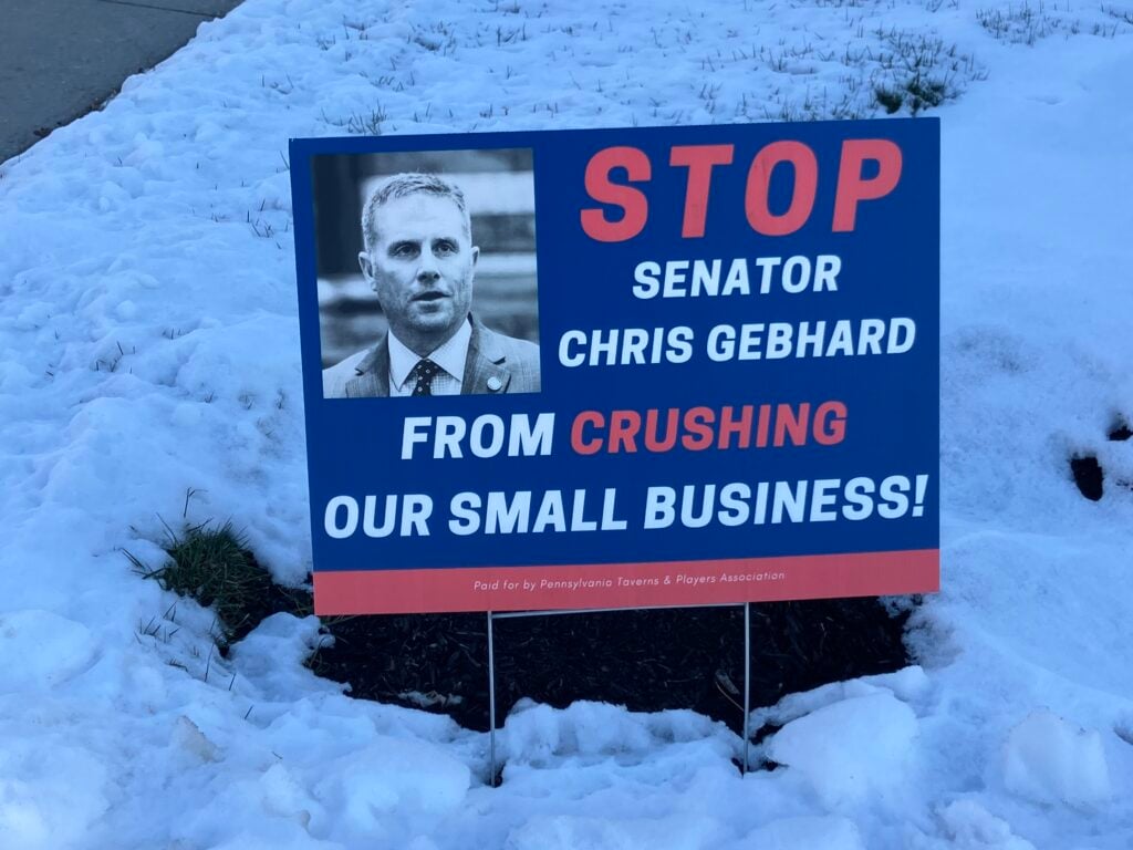 Gebhard and representatives of the small games industry have been at odds over Senate Bill 756, which outlines regulations and a tax structure for skill games. Gebhard is the prime sponsor of SB 756, and numerous yard signs opposing the bill have popped up around Lebanon County.