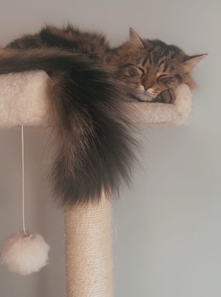 “Gypsy is the shy girl at first but once she comes out of her shell she is very playful and will love you 24/7. She has her own pillow in bed and sleeps there every night,” Katie adds. “Bear is who we call the menace, but is the sweetest girl. She loves bringing me mice, digging in plants and chattering at birds outside the window. She also plays fetch! They are both the sweetest girls! Rescuing them has been such a rewarding experience!”
