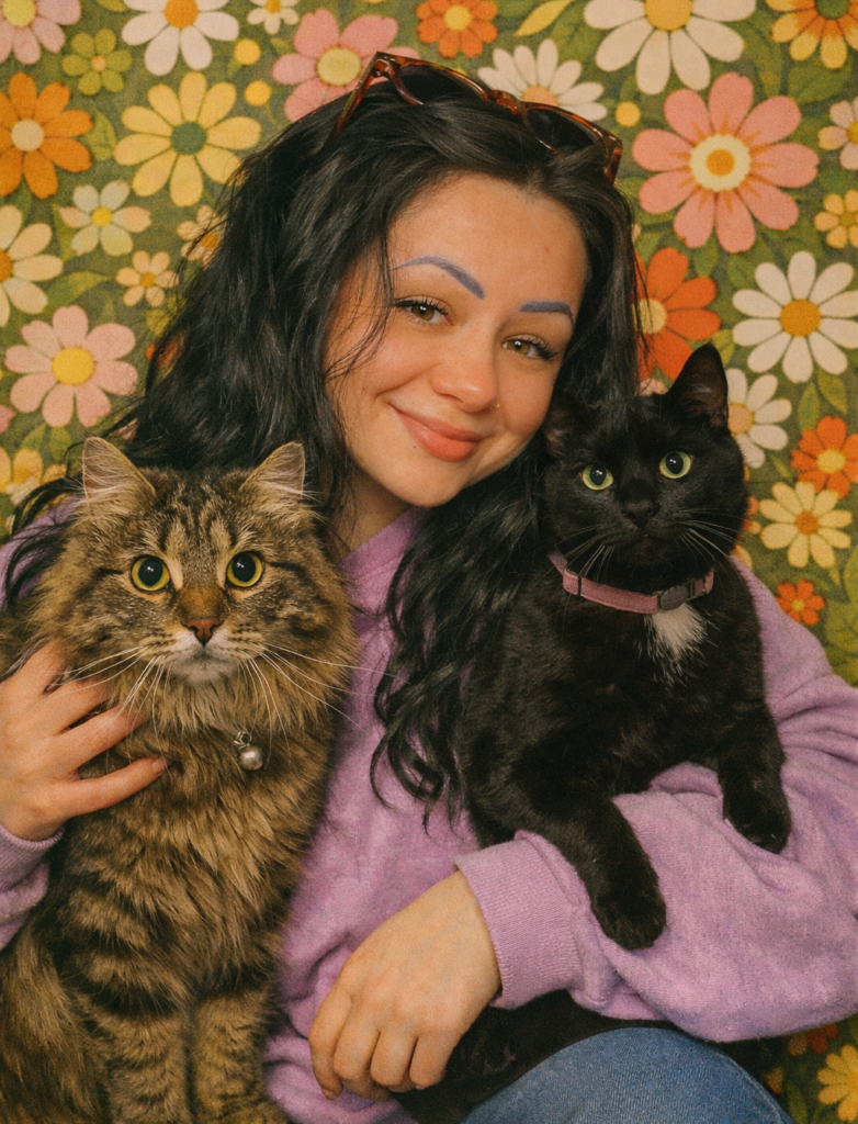 “Gypsy is an all black domestic shorthair with a little white patch on her chest. Bear is a long-haired tabby with a little bit of Siberian longhair in her, too,” says owner Katie Hostetter.