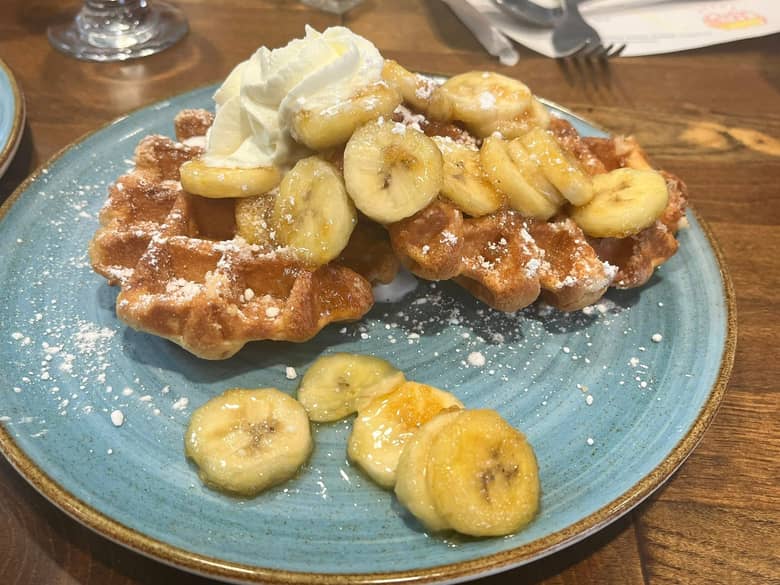 Cafรฉ Haj Paj โ Bananas Foster Belgian Waffle