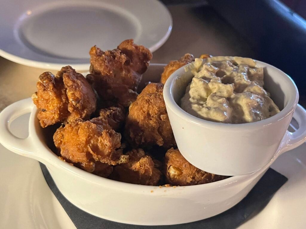 The fritters are house hush puppies accompanied by poblano crème. You get plenty of them in an order and the spicy poblano makes for a great start to the meal.