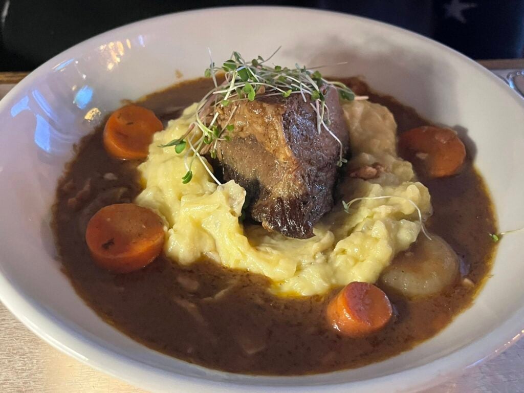 The short ribs come with fennel, mushroom, cipollini, carrots, and garlic mashed potato. The short ribs fall apart as you dive in. A fancy dish that has a down home comfort feel. The gravy is delectably savory. More than enough to take home as a second meal for another day.