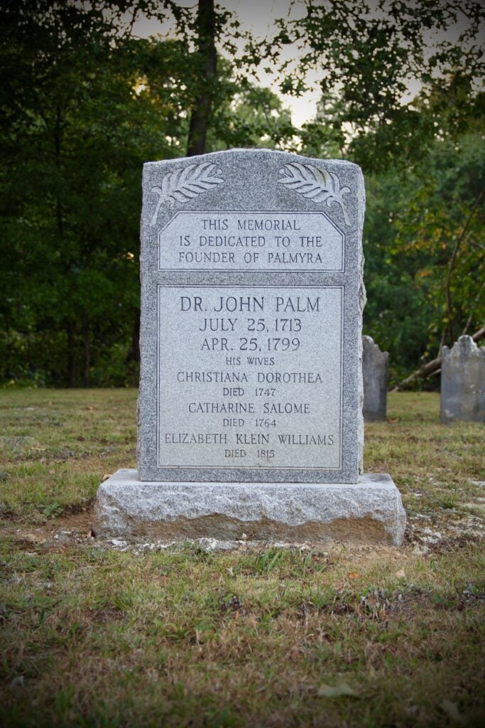 She said history doesn’t know exactly what happened to Hans Bindnagle or his family, and the name died out. However, John Palm, founder of Palmyra, was a member of the congregation, and family history indicates a Bindnagle child married a Palm child. John Palm is now buried in the cemetery behind the church.