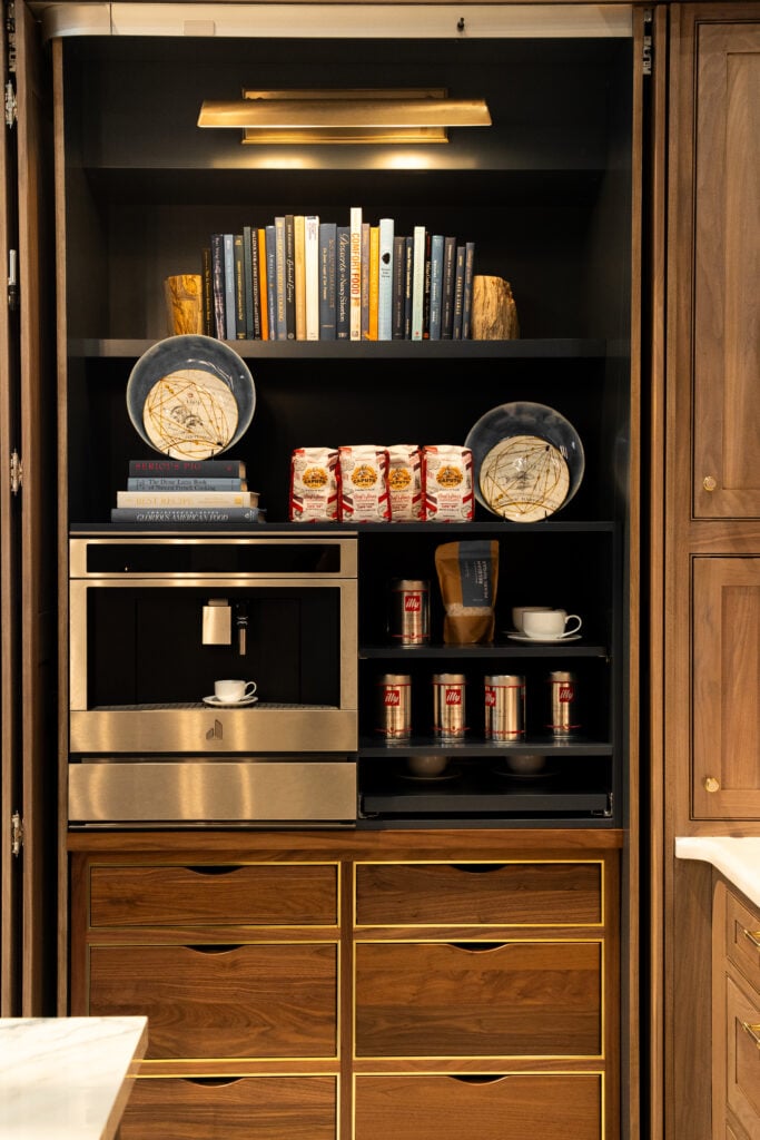 Plain & Fancy also offers accessories for cabinets such as cutlery dividers, pantry or spice rack pullouts, wire bins baskets, double waste baskets, and laundry hampers. Drawers can be crafted with a built-in docking station, to store technology such as phones, tablets or laptops; there’s also a version designed for small kitchen appliances or to store items such as hair dryers and curling irons in the bathroom.