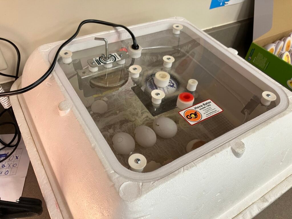 “It’s a 21-day incubation period, and then we hope that they’ll hatch on a Monday,” Gregory said, adding that pipping entails a chick breaking out of its shell. “And then the chicks will be here in the classroom until Friday.”