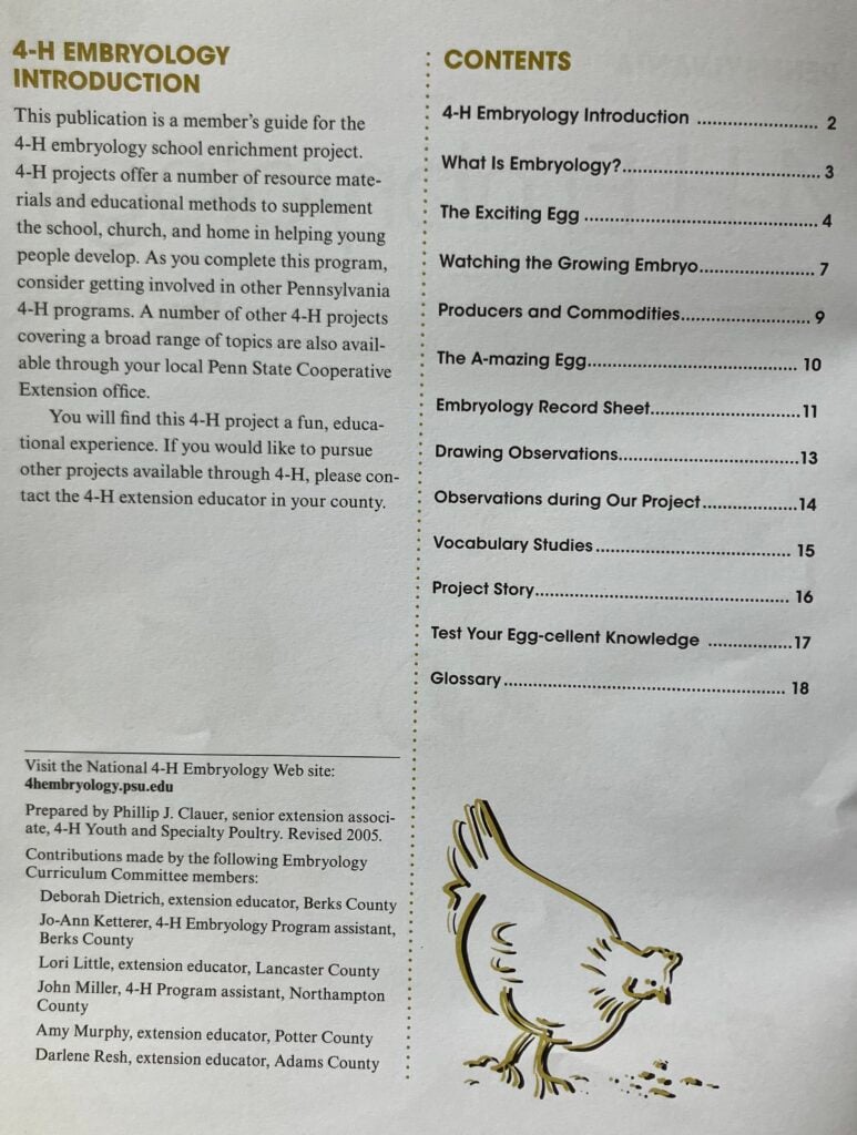 Penn State Cooperative Extension supplies the course materials, along with the incubators, heating lamps, etc., to help make each program successful, according to Gregory.