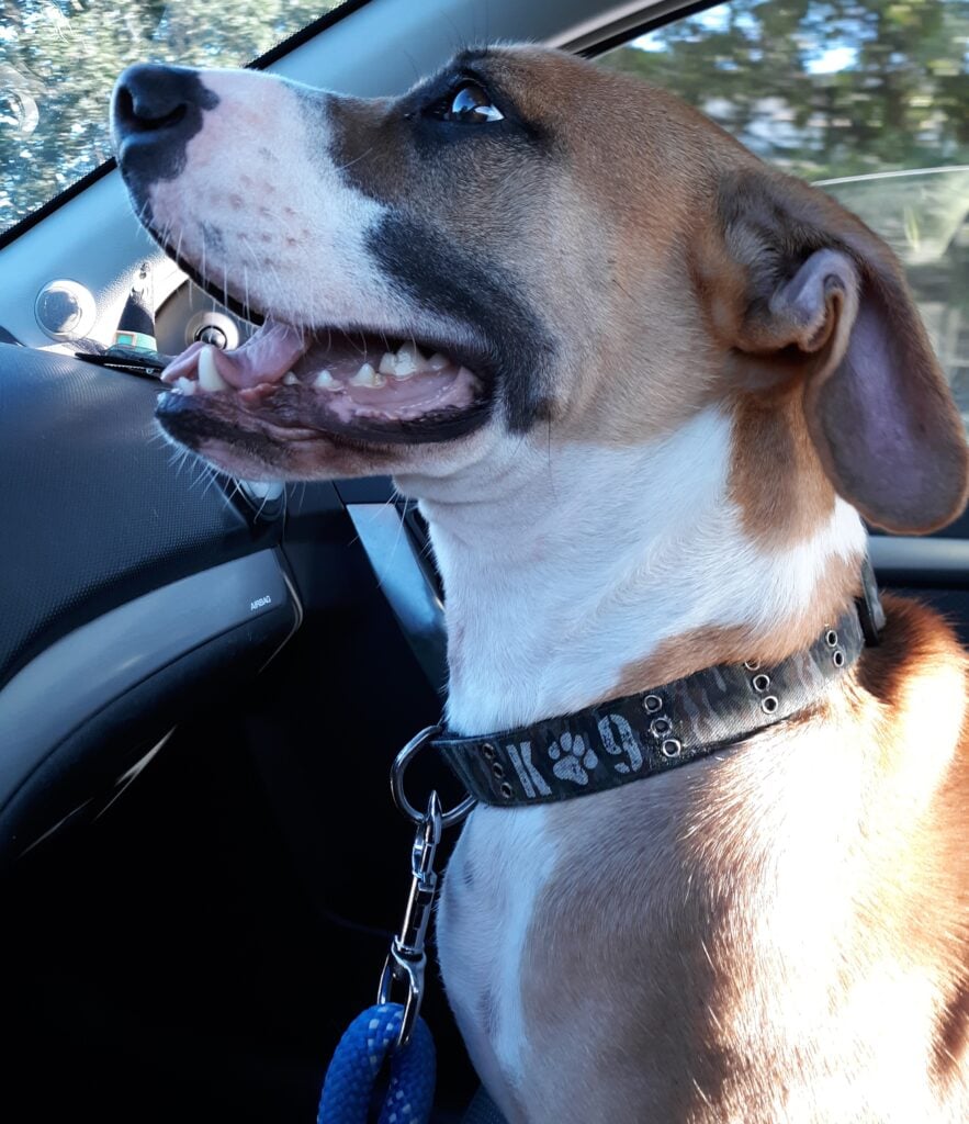 “Archer was rescued from Georgia, so he loves the nice weather,” she says. “He loves to go on (short, due to the short legs) hikes, be lazy on the couch, or just ride in the car (especially if he gets to bark at buggys).”