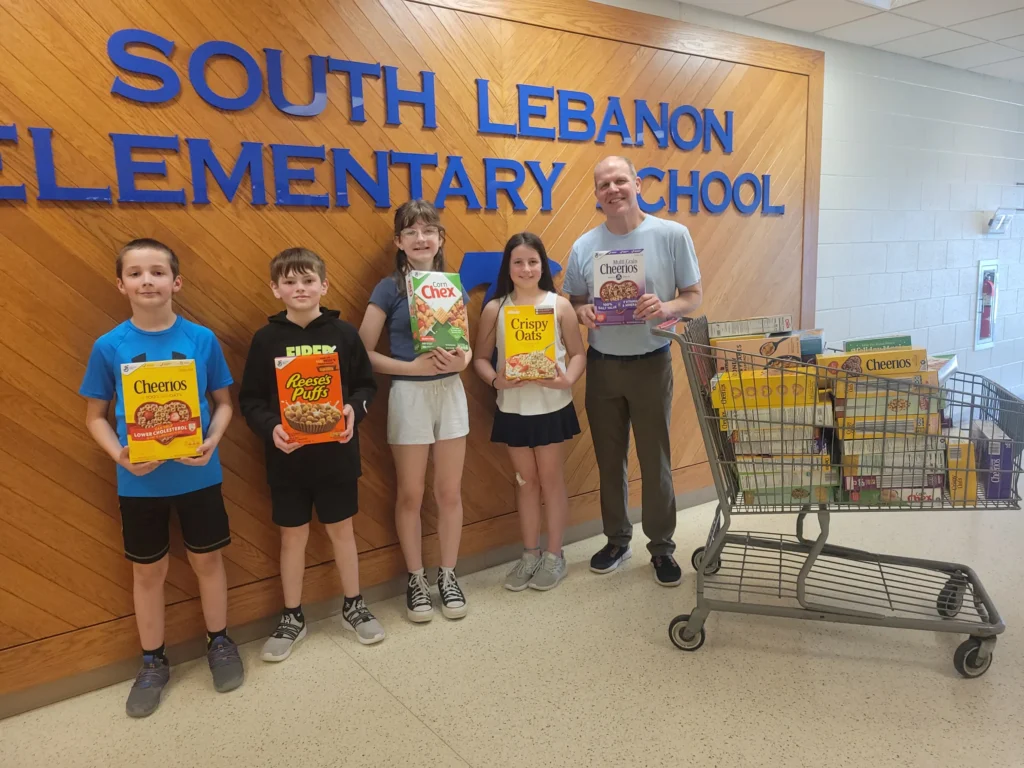Students at South Lebanon Elementary School collected more than 1,000 boxes of cereal in a campaign to provide food for needy families in the area.