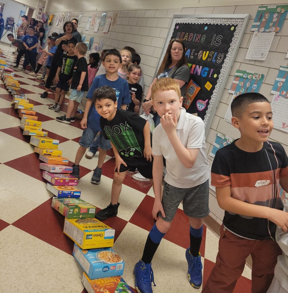 “Our school found multiple ways to get involved,” he added. “During our Book Bingo event, families contributed cereal donations, and our Parent Teacher Partnership played a key role in supporting the initiative. In addition, students created a large ‘cereal box graph’ in our instruction room, allowing them to track progress and see the impact of their efforts grow each day.”