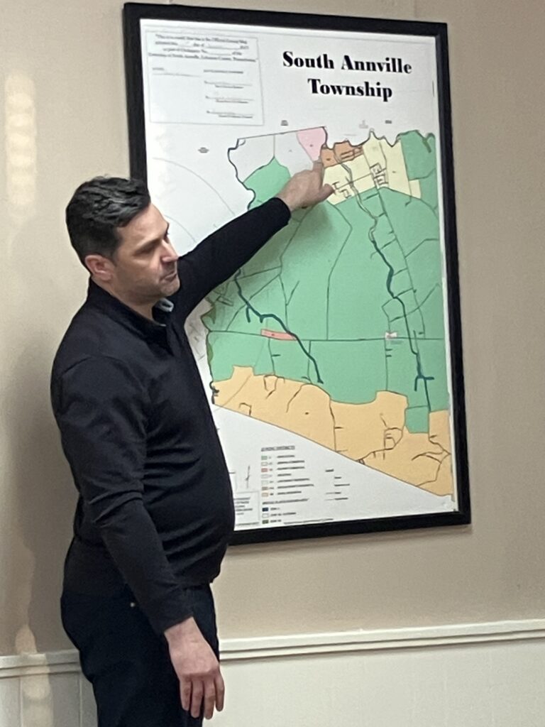 “What I wanted to share with you, something’s going to be built there. And as we all know that zoning ordinances have zoning districts. and you have to provide for all of the uses,” Sheetz added. “As Joe said, and I’ll share this with you, ’cause some of you know this, some of you don’t, South Anville has more preserved farms in Lebanon County than any other municipality. There’s 37 and a half preserved farms in South Anville, and there’s one under consideration now. There’s almost 36,000 acres that are preserved. And as long as I’ve been on the planning commission, our goal was to save the farmland. But you have to provide uses in other areas too.”