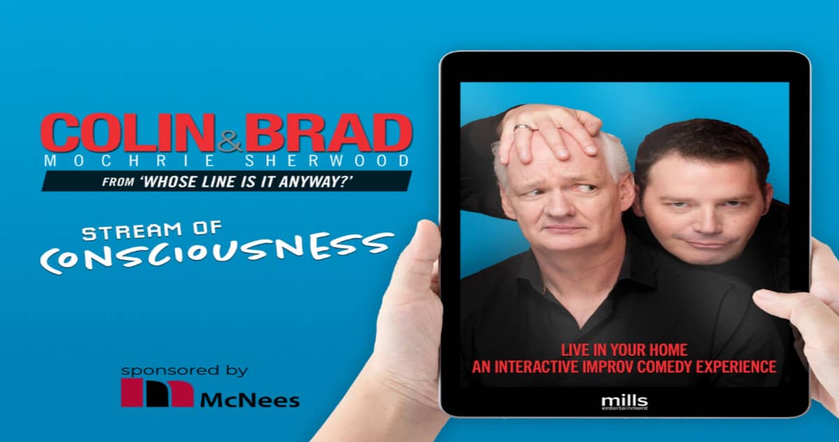 Whose Line is it Anyway? stars Colin Mochrie and Brad Sherwood will be featured in Stream of Consciousness: an interactive improv comedy experience, presented by Gretna Theatre and executive producer Brian Kurtas, on March 20 and 27 at 8 p.m.