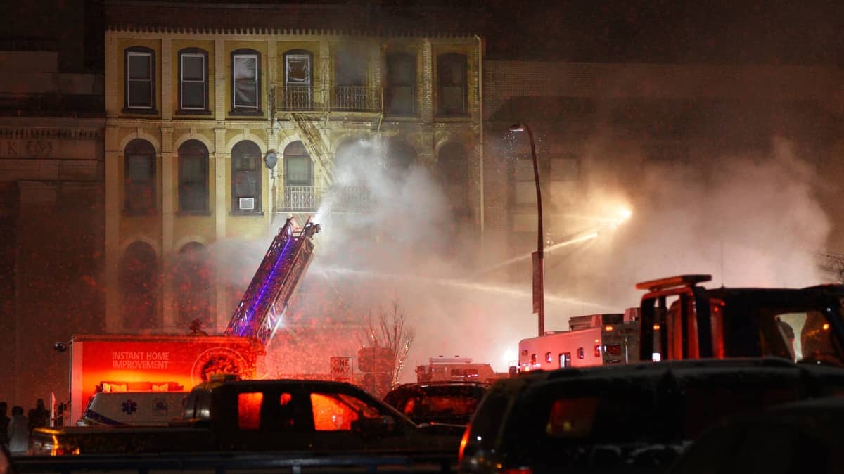 Firefighters battle Saturday night downtown fire amid snowstorm