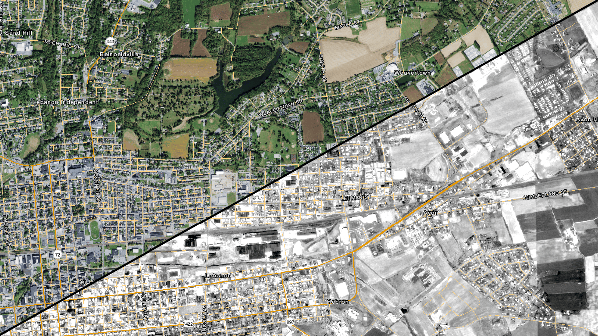 Compare aerial images of Lebanon County from 1993 to ones taken in 2019.