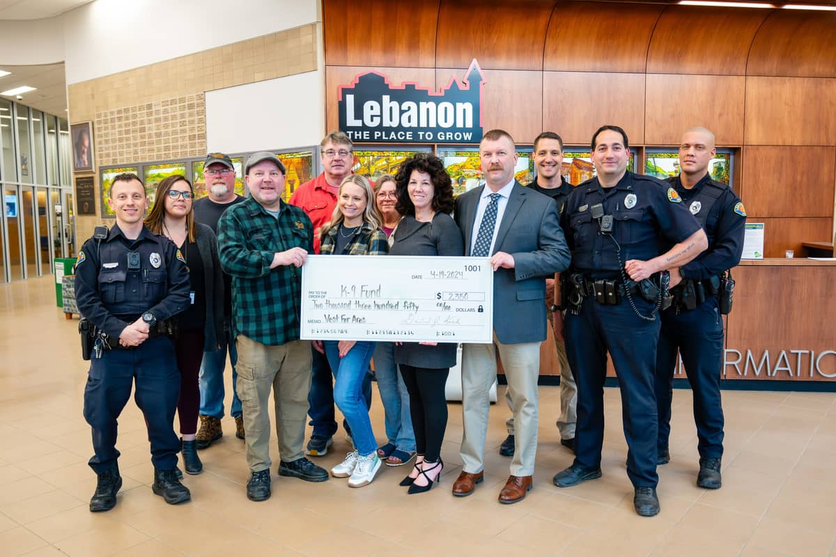 At a brief ceremony Friday, April 19, at Lebanon City Hall, city officials accepted a $2,350 donation from Lebanon Valley Craft Brewery to fund the purchase of a new bulletproof vest for K-9 officer Ares.
