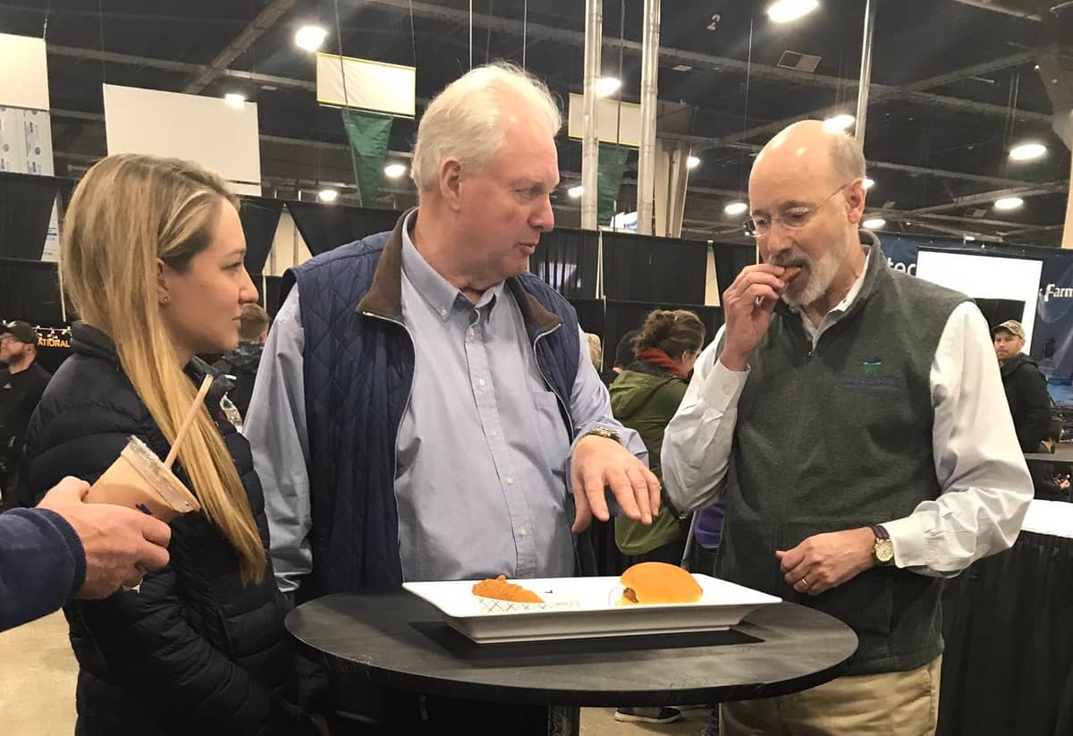 Gov. Tom Wolf loves one of Bell & Evans’ new Farm Show items: a gluten-free breaded chicken sandwich