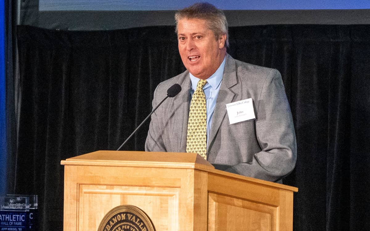 John Wilsbach, the voice of Lebanon Valley College men’s and women’s basketball and football for 20 years, was named the 2025 Broadcaster of the Year.