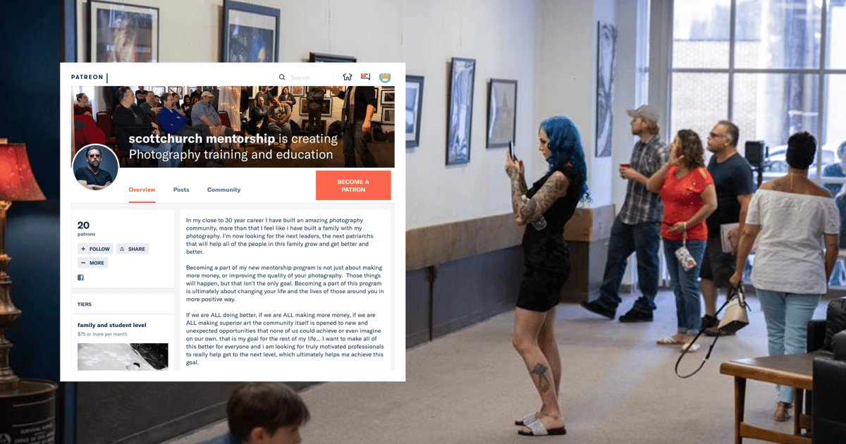 Using the crowd patronage website Patreon, locally-based Scott Church has opened up his studio (and his calendar) to photographers seeking to grow their craft.