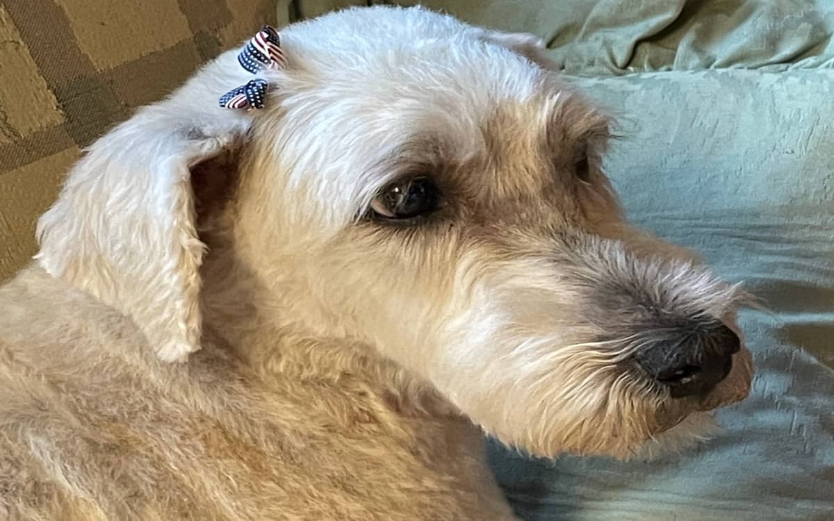 Abe, Jill says, is a mix of many breeds, “otherwise known as a mutt.”