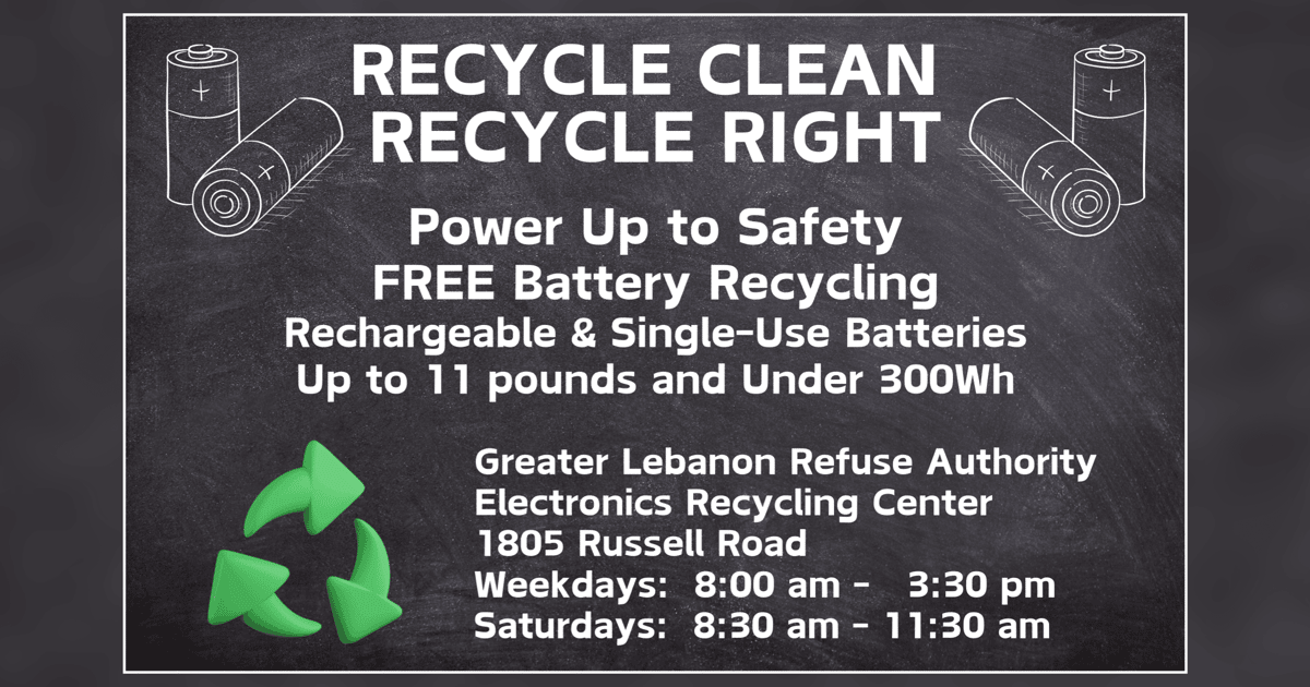 GLRA accepts all rechargeable and single-use batteries for FREE at its Electronics Recycling Facility, located at 1805 Russell Road, Lebanon.